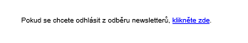 2. V každém newsletteru, který je do vaší e-mailové schránky doručován, je na konci uvedena možnost odhlášení z odběru. Její doslovné znění je následující: Pokud se chcete odhlásit z odběru newsletterů, klikněte zde. Poté se stačí pouze prokliknout přes modrý nápis a odběr odhlásit.